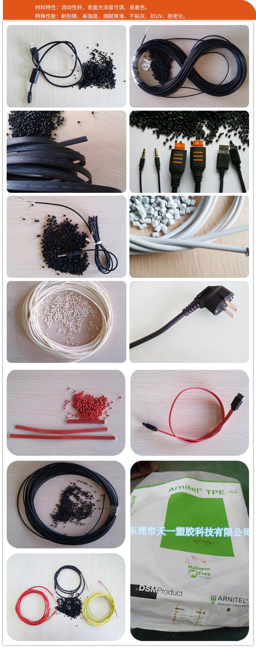 應(yīng)用領(lǐng)域:數(shù)據(jù)線(xiàn)、聯(lián)接線(xiàn)、插頭、電子配件、及有阻燃要求的產(chǎn)品。